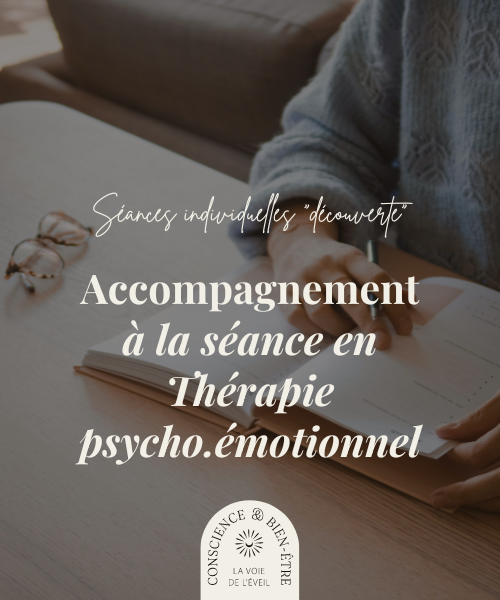 Séance individuelle en accompagnement psycho.emotionnel afin de pouvoir vous aider à soutenir votre santé mentale, votre bien être psychologique et vous offrir des stratégies afin de surmonter vos soucis émotionnels ( stress, déprime, traumas, burn out, liens familiaux dysfonctionnels ...). Ces séances s'adressent à un public adulte.